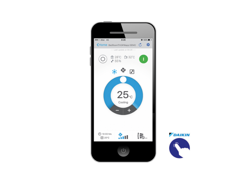 Wi-Fi module for connection to Daikin’s Mobile Controller smartphone interface is now conveniently included inside the casing of the indoor unit.