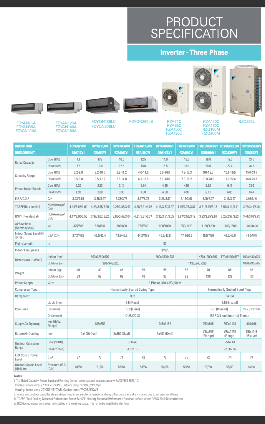 Daikin 25kW Inverter Ducted System Three phase - FDYQN250LBV1 / RZQ250LV1